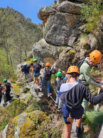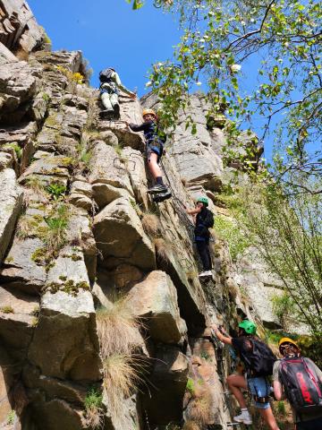 Nous sommes bien arrivés vers 11h45 au centre. Nous avons rencontré la pluie sur la route mais cette fois le ciel se dégage et le soleil se montre un peu... Une fois le pique-nique englouti, nous voilà partis pour la 1ère activité : c'est parti pour via ferrata, escalade, VTT ou course d'orientation !